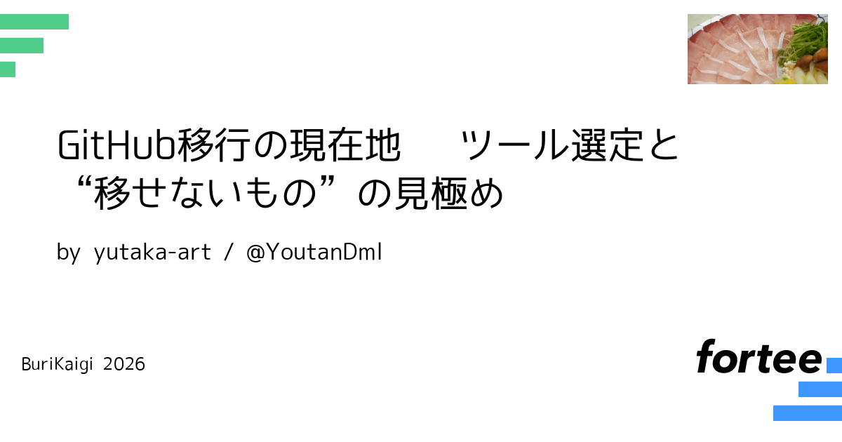 現場では「試用 → 本番」や「通常アカウント → EMU(Enterprise Managed Users)」への段階移行が増加中。本セッションでは、実案件およびコミュニティでの知見(※GitHub Stars受賞者としての最新動向も踏まえ)から、GEI / GitHub Migration Analyzer / gh-repo-stats等の実運用ノウハウを整理します。