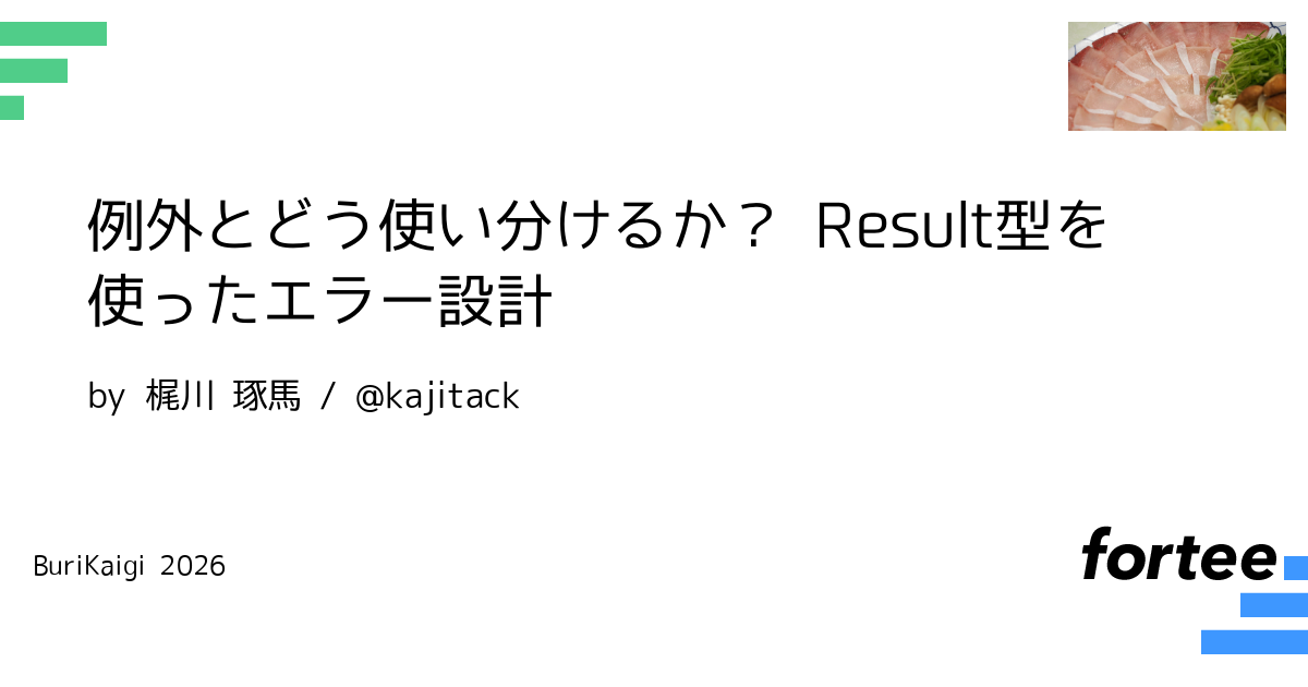 本セッションでは、例外(try-catch)を用いる言語のプロジェクトにResult型を取り入れる設計方法を紹介します。
