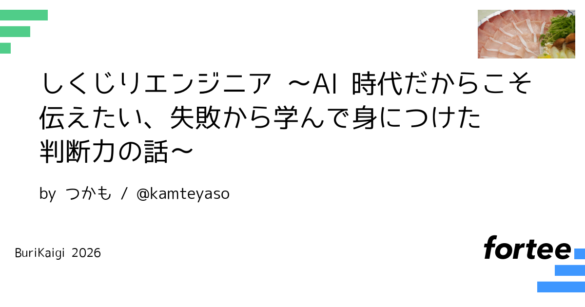 優秀なエンジニアの成功談ではなく、“何度もしくじりながら少しずつ判断力を磨いてきた ジュニアエンジニア”として、同じように悩む誰かの背中をそっと押せる時間にしたいと思います。