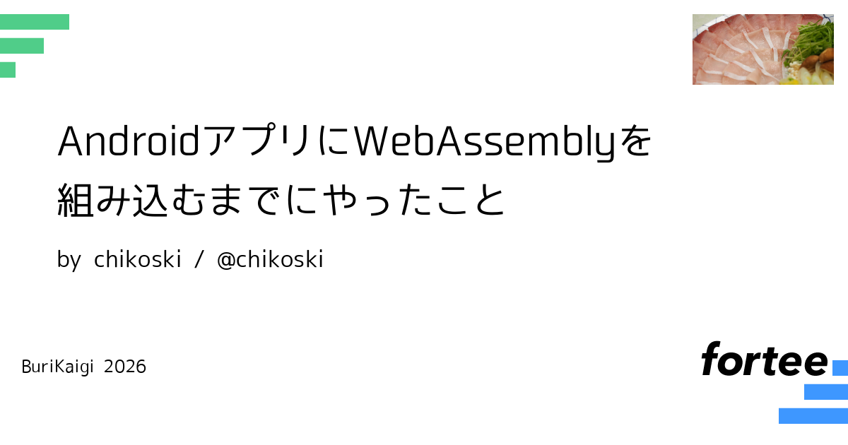 WebAssemblyとしてビルドされたロジックを利用したAndroidアプリを試作しました。この試作によって、NDKに対応していないJavaScriptなどの言語で実装されたライブラリをAndroidアプリに組み込むことが可能になることが示唆されます。
