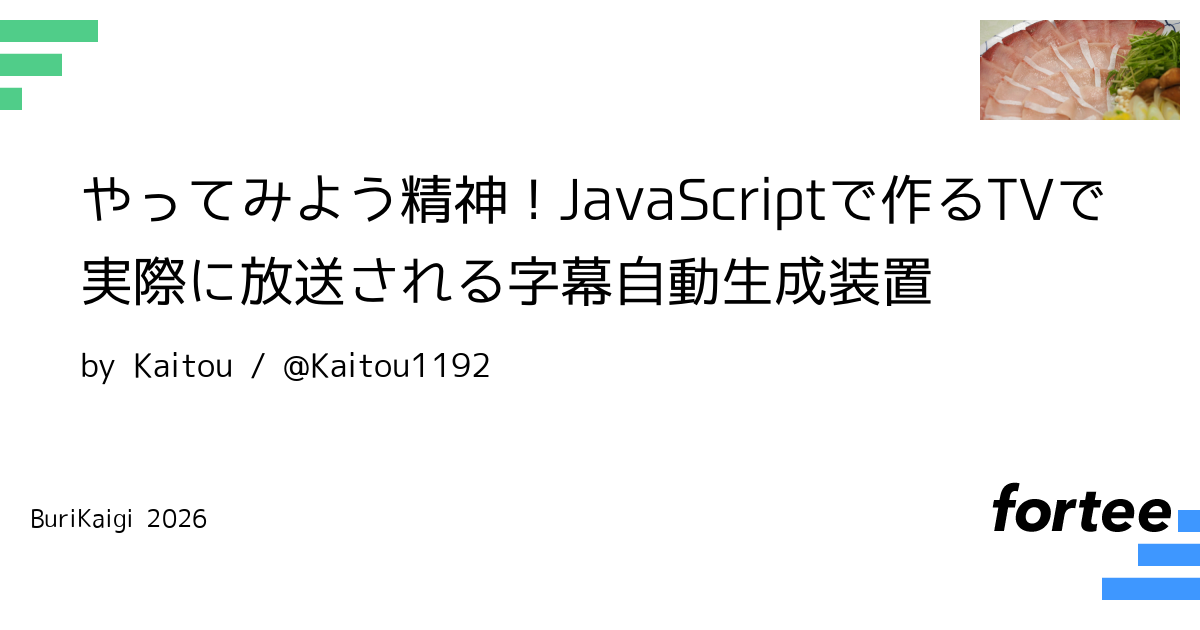 JavaScript(+Vue.js)とCanvas、Chromeを使って実際のTV放映で使われている字幕の自動生成について解説いたします。