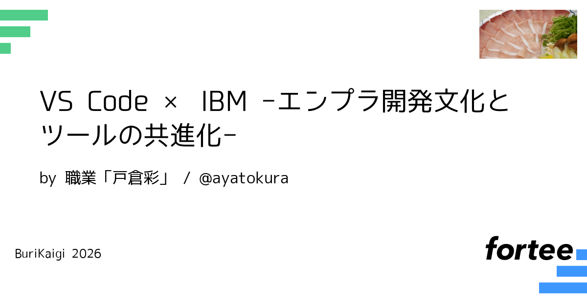 VS Codeのオープンな文化と、IBMが推進するエンタープライズ開発者体験(DX)。その交点には、“ギーク的思考“と”企業的スケール“を融合する挑戦があります。 このセッションでは、IBMが提供するVS Code拡張機能を通じて、クラウド(IBM Cloud)、AI (watsonx)、コンテナ(Red Hat OpenShift)のローカル開発からクラウドデプロイ、AI支援まで一気通貫で行う開発フローをご紹介します。