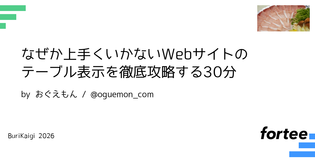 本セッションでは、私が現職で取り組んでいるSaaS製品の巨大テーブル開発における経験やHTML/CSSの仕様などに基づき、テーブル表示の上手くいかないところとその対処法を整理します。