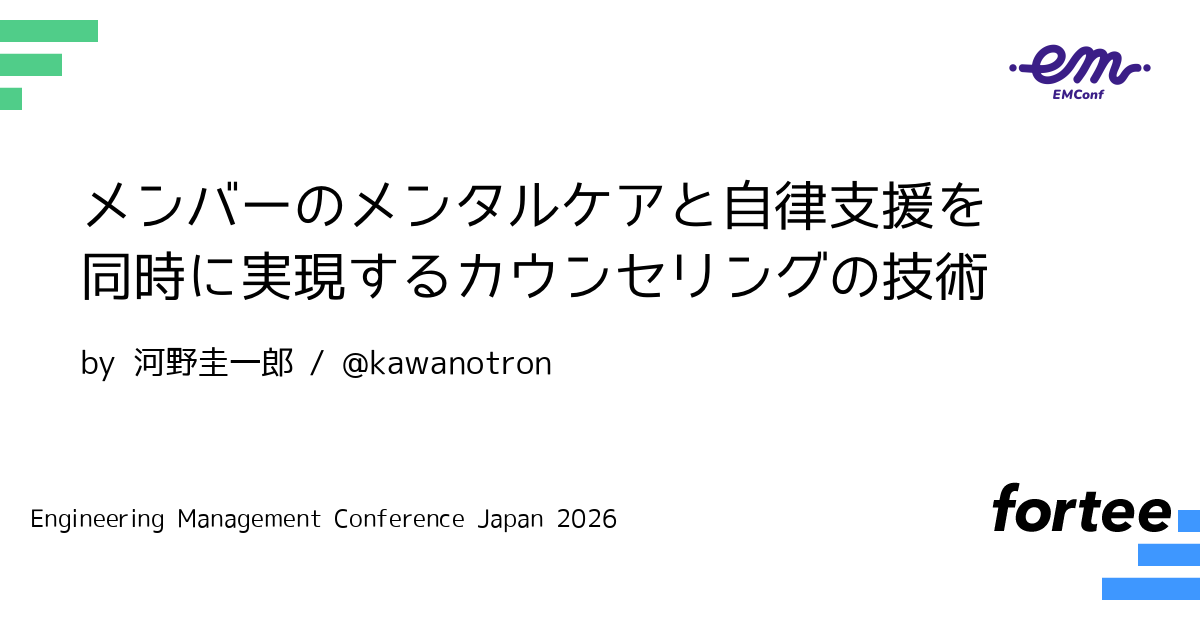 本セッションでは、カウンセリングの基本的な考え方をもとに、エンジニア組織のマネージャーがどのように「メンバーの心を支え、自律を促すマネジメント」を実践できるかをお伝えします。具体的には、1on1やフィードバックの場で使える傾聴スキル、関係性構築のヒント、そして「心理的安全性」と「自律」の両立を実現するための実践知を共有します。