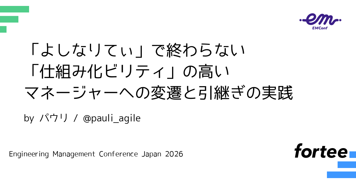本セッションでは、この問題を何事も抽象的な期待で上手く(よしなに)やれる個人の能力である「よしなりてぃ」と、その業務を後任者や他組織が再現可能な状態にする組織的な能力である「仕組み化ビリティ」という2つの能力の観点から解き明かします。