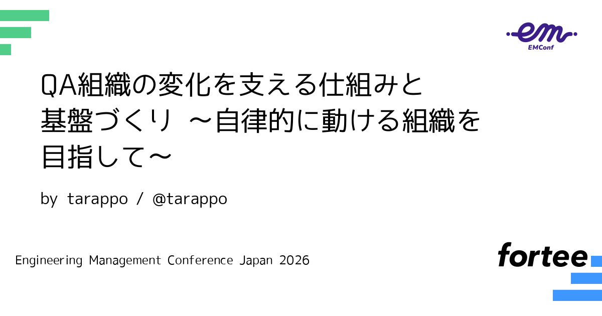 組織の変化に合わせてQA組織が適切にコミットメントできるようにするための実践と、その過程で得た知見を共有します。