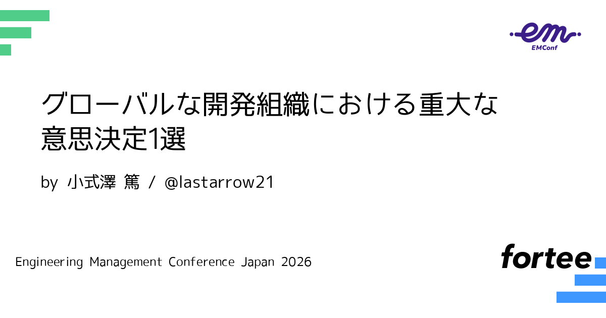 このようなグローバルな開発組織を運営する場合、「どの言語でコミュニケーションするか」は避けて通れない組織設計上の決断となります。英語を共通言語とすべきか、日本語を維持すべきか、多言語環境を許容すべきか。その答えは単なるカルチャーだけではなく、事業戦略、採用市場、組織構造、プロダクト開発プロセスに密接に関わる「重大な意思決定」となります。このセッションでは、グローバルな組織にて私たちが実際に実施した「言語ポリシー」の判断を題材に、組織の文化の醸成、課題の変遷と意思決定プロセスを紹介します。