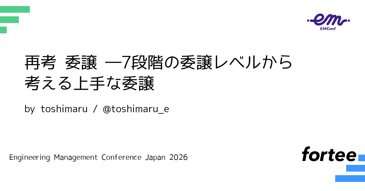 本発表では、この7つの委譲レベルを手がかりに委譲という行為を解きほぐし、<上手な委譲>とは何かを考えたいと思います。