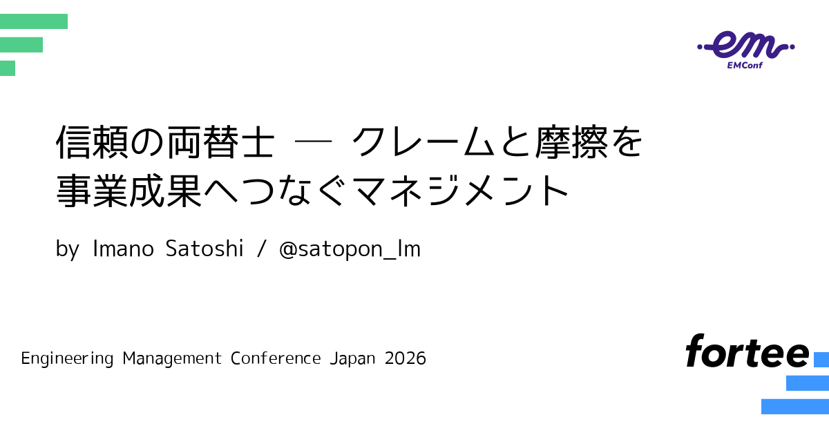 本セッションでは、三者の摩擦を信頼へ変換し、事業に接続する“両替士としてのEM”の実践知を共有します。
