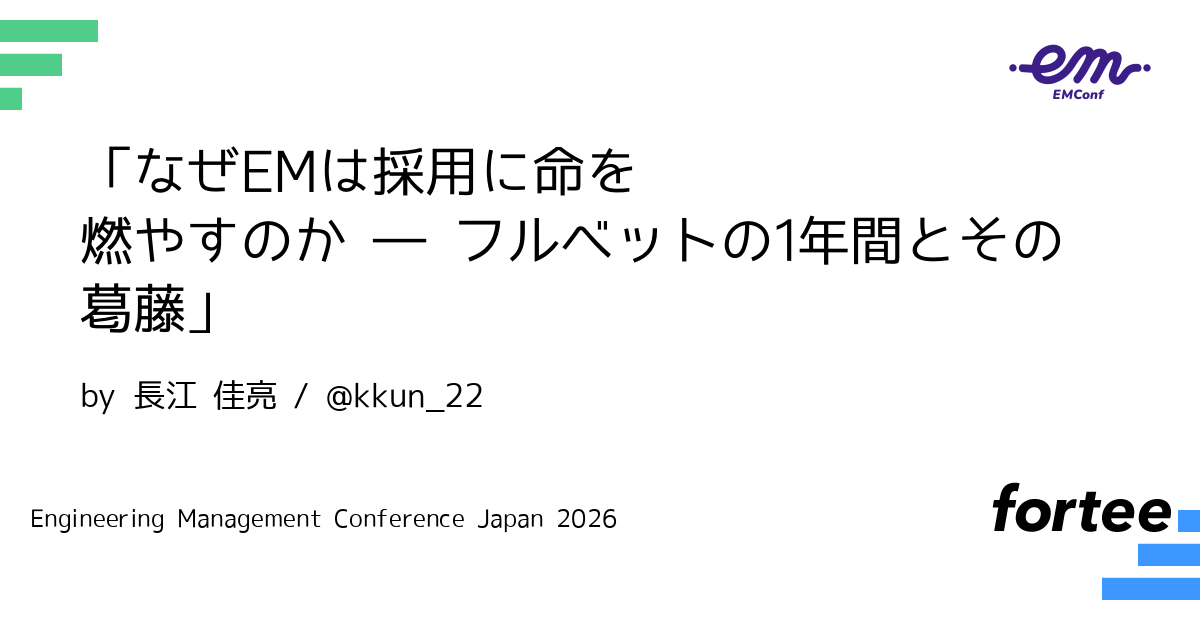 この1年間、私は「採用しかしていないEM」でした。設計にもレビューにも入らず、毎日カジュアル面談と社内調整に明け暮れる日々。成果への焦り、エンジニアとしてのアイデンティティの揺らぎ、苦悩。