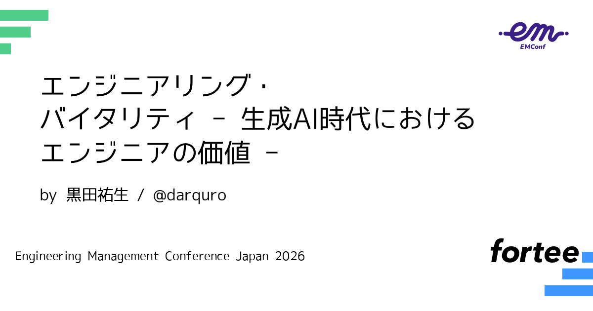 本セッションでは、生成AIが組織全体に浸透した開発現場での実践経験を基に、これからのエンジニアに求められる「人間力」とは何か、そしてエンジニアリングマネージャーとしてそれをどう育むかを具体例と共にお話しします。