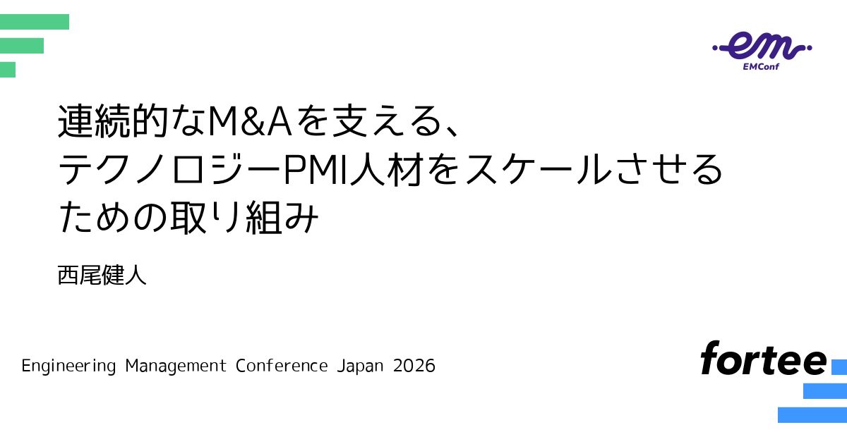 GENDAは「2040年世界一のエンタメ企業に」をVisionに掲げ、積極的なM&Aを成長戦略の柱としており、2023年7月の上場以降、累計で約40件のM&Aを実施しています。その裏側では、グループイン後の企業統合(PMI)を担える人材が継続的に求められています。しかしPMIは、技術・事業・組織文化が複雑に絡むため属人化しやすい領域です。そこで私は、グループ企業であるカラオケ事業に出向してテクノロジーを中心としたPMIの現場で得た経験をもとに、若手エンジニアをテクノロジーPMI人材へ育てるための再現性ある育成モデルを設計しています。