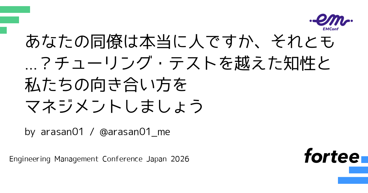 これまでの人間を中心としたエンジニアリングマネージャーの仕事を超えて、機械も人と同じように扱うことができるのではないか、AIの時代に善く人を導くこと、AIでさえもEMが導く対象であると考えることを話します。