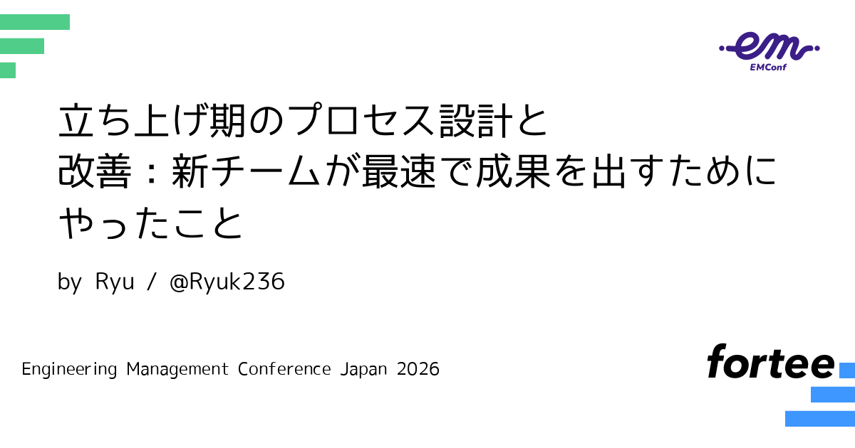 これから新チームを立ち上げるEMや、プロセス改善に悩むリーダーが明日から使える知見を提供します。