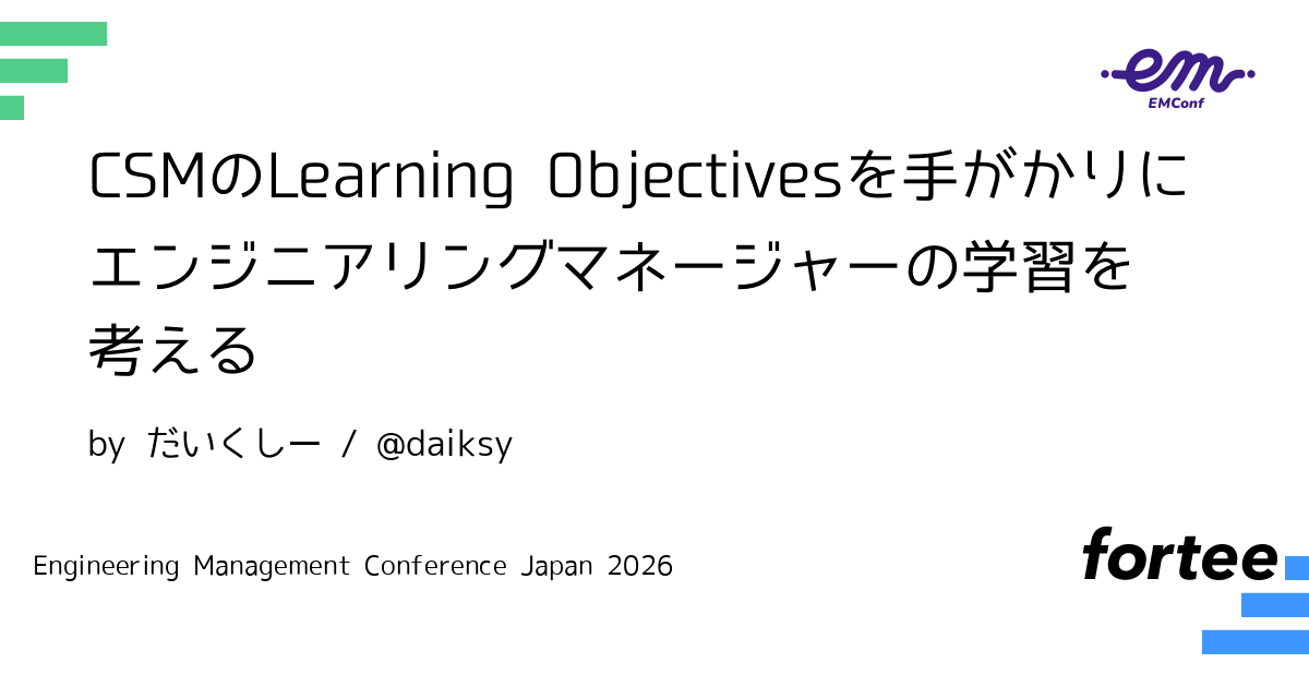 今年、自分の仕事のひとつとして社内のエンジニアリングマネージャーのキャリアラダーを整えました。その結果をまとめたものをDevelopers Summit 2025 KANSAIで発表しました。