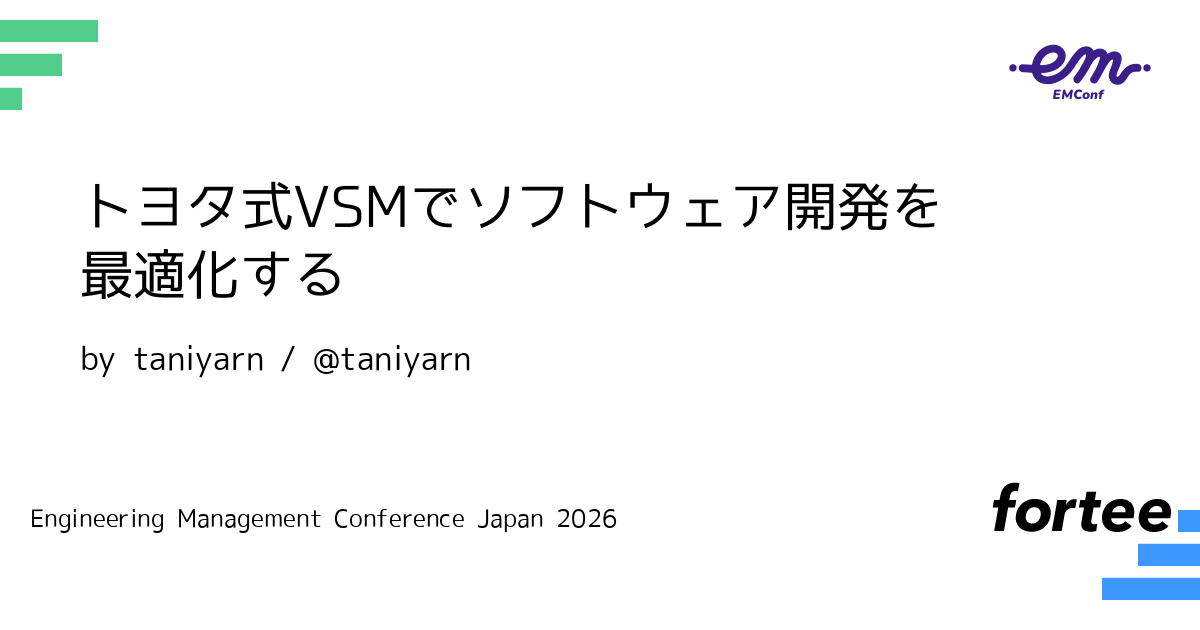 本セッションでは、TPSの中核である Value Stream Mapping(VSM)の概要を紹介した上で、ソフトウェア開発において要件定義からリリースまでの流れを可視化・分析した実践事例を紹介します。