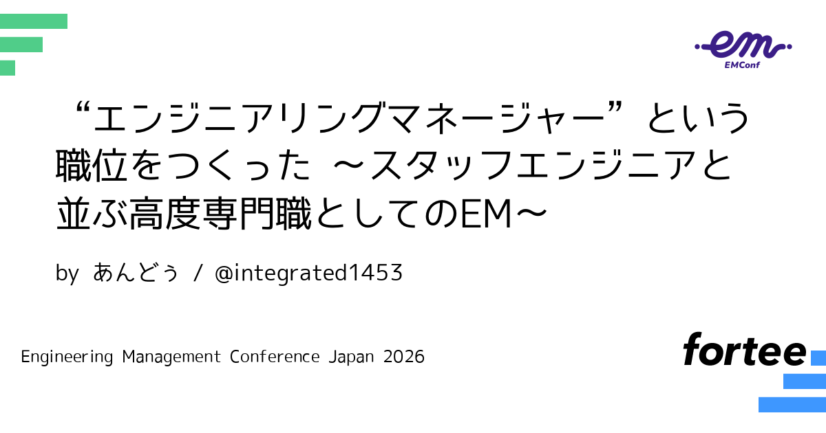 「私もEMみたいな仕事をしています。先月まで3人チームのプレイヤーでしたが、今月からチームリーダーになりました。」のように部分的にEMの仕事を担当する方から、EM10年選手で複数のチームを任され組織運営に関わるベテランまで、「エンジニアリングマネージャー」という役割だと捉えられていることが多いのではないでしょうか。
