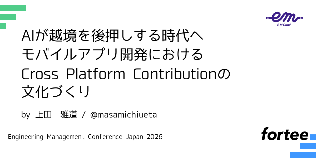 本セッションでは、メルペイにおけるCross Platform Contributionの取り組みを通じて、AI時代のエンジニアの新しい役割とキャリアの可能性について紹介します。iOSとAndroidのエンジニアが互いのコードベースに貢献し合う実践事例、AIツールを活用した開発プロセスの変化、そして組織としてその動きを支える仕組みについて掘り下げます。