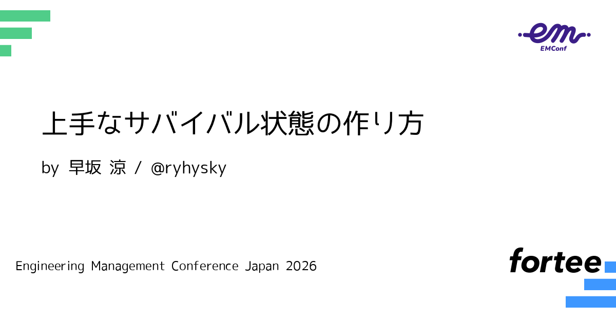 本セッションでは、チームの成長を最大化する「適度なサバイバル状態」をいかに設計・維持するかを、実践例と失敗談を交えて共有します。