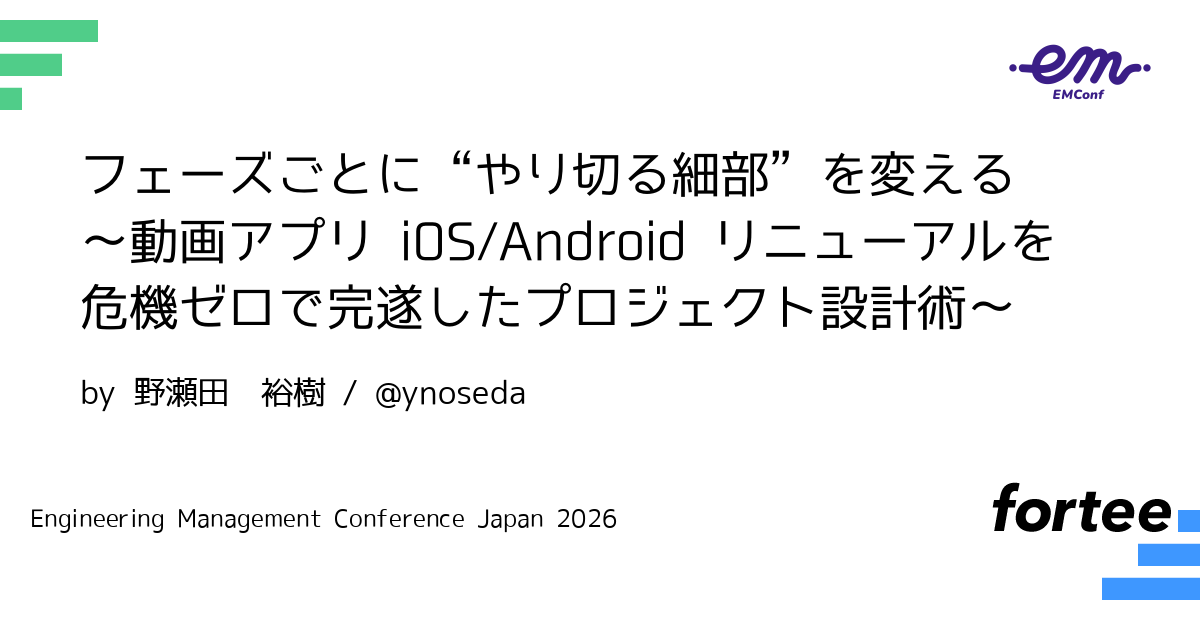 本セッションでは、この「フェーズごとにやり切る細部を変える」アプローチを、段取り・チーム成熟・品質戦略の3軸で解説します。