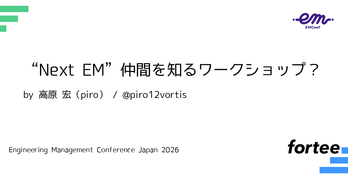 つまり、前回の EMConf JP に集まった 1/3 以上が、『自分は今 EM じゃないけど EM 向けの話を聞きに来た』方々だったのです(そんな志の高い皆さんを “Next EM” と呼んでみます)。