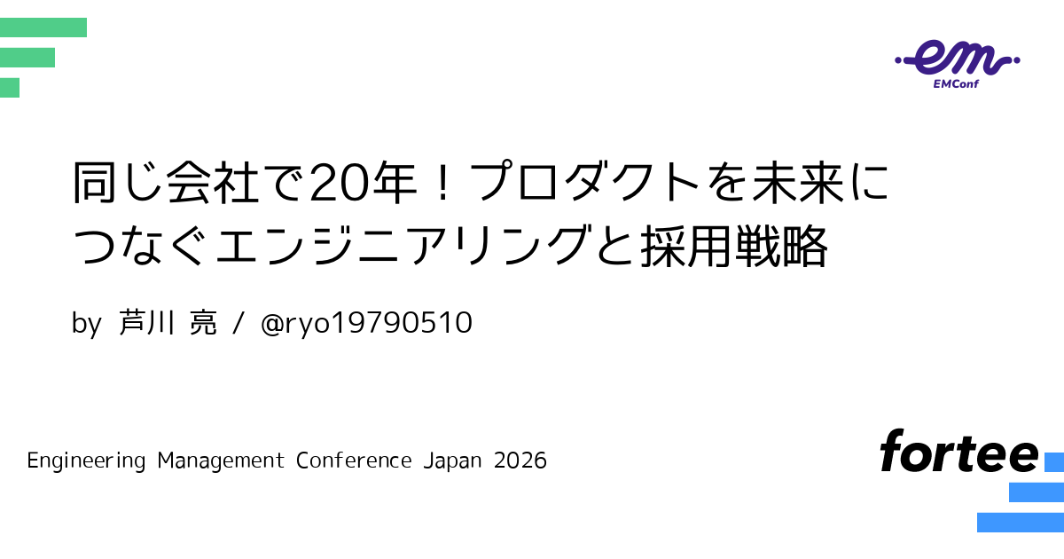 そしてEMとしては、em triangleを指針に「人・プロダクト・技術」のバランスを常に意識。プロダクトを未来につなぐためには、採用もあわせて必要です。会社の認知活動、ワークサンプルテストや構造化面接の導入など、実際に取り組んでいる採用活動のEM経験談(成功も失敗も)も話したいです!さらには、採用後に、「プロダクト存続マインド」を持つ仲間を増やすためにできること、ここは正直煮詰まっていない部分もあるのですが、まずは、その事業のドメイン知識を吸収させることが大事だと思っていまして、これまでやってきて功をそうした方法、ドメイン知識の効果的な伝承方法も含めて、具体的な取り組みを話したいです。