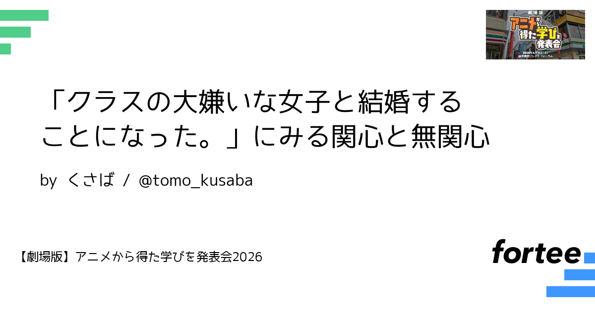 本セッションでは、作品「クラスの大嫌いな女子と結婚することになった。」を手がかりに、この命題を掘り下げます。