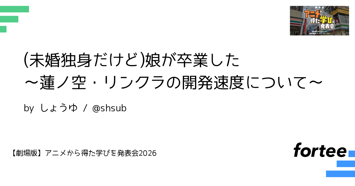 恐らくこのトークを話すころには2026年に4月になり、2023年にスタートしたリンク・ライク・ラブライブの舞台、蓮ノ空女学院の103期生は実時間に沿って卒業することになります。 愛娘のように可愛がってた日野下花帆が卒業して失意のどん底になってると思うんですが、このスマートフォンアプリは他の作品に比べて異常な速度で開発が進んでいたように思われたので、その辺りをスクラム開発の知識も交えながら想像します。