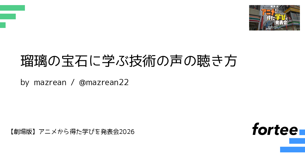 本セッションでは、外的な挙動から内的な「技術の声を聴く」過程で何が起きているのか瑠璃の宝石 11話を例に考察していきます。