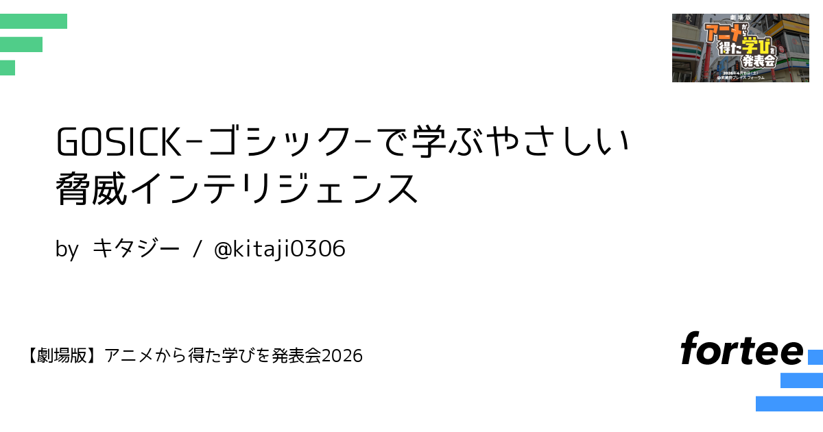 本セッションでは、アニメ『GOSICK』で描かれる「バラバラな情報から真実を見つけ出す推理」をヒントに、『脅威インテリジェンスという“考え方”』を初心者向けに紹介します。