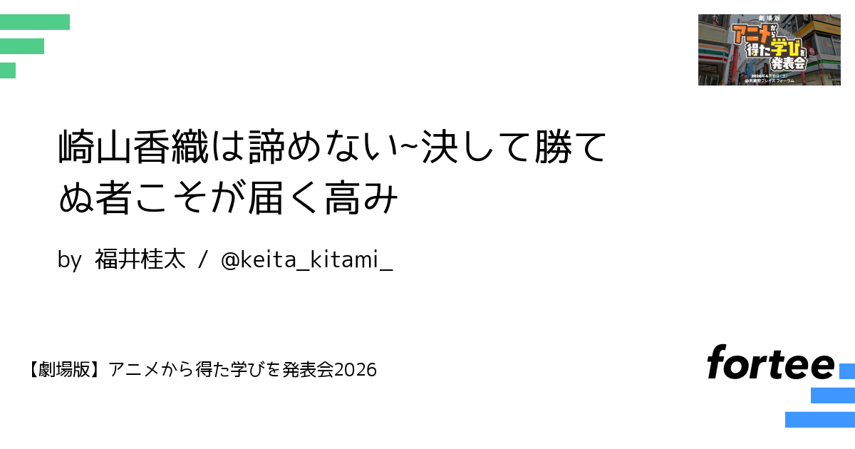 ストリートファイトを描いたTVアニメ「エアマスター」に登場する最高のやられ役崎山香織の生き様を通して。諦めないことの大切さ、そして諦めなかったことによって得られるものについて話してみます。