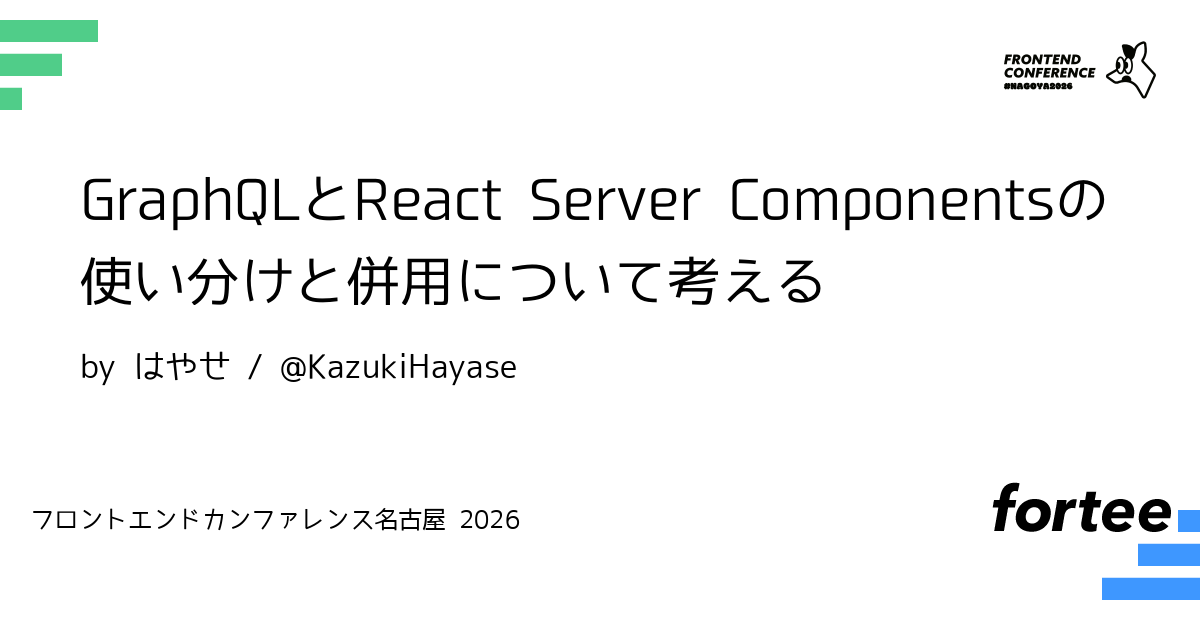 本セッションでは、まずGraphQLとRSCがそれぞれ何を解決する技術なのかを整理した上で、類似点と相違点を解説します。 そして、RFCや公式の発信情報も参照しつつ、併用で得られるメリットとそれに伴う複雑性のトレードオフについて、実務での経験も交えながら紹介します。