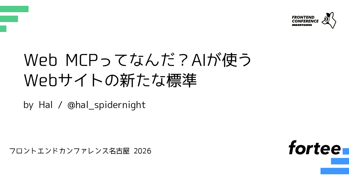 本セッションでは、Webサイトの機能を「AIが直接叩けるツール」として定義し、ブラウザを介して安全にエージェントへ提供する仕組みを、5分のLTに凝縮して解説します。