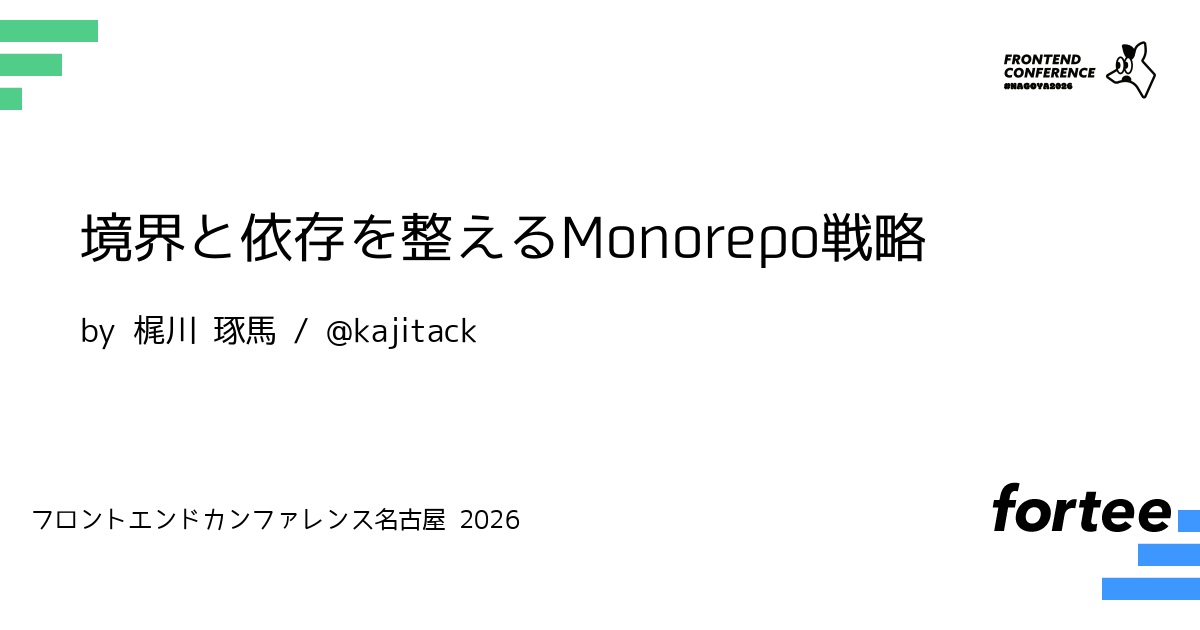 本セッションでは、4つのフロントエンドアプリケーションを1つのMonorepoに統合した事例をもとに、統合を起点に進めたリアーキテクトを紹介します。