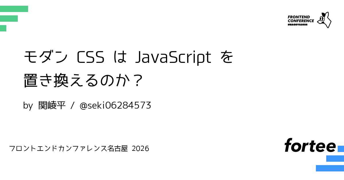 本セッションでは「モダン CSS はJavaScript を置き換えるのか?」という問いを起点に、CSSが実際に置き換え始めている領域と、依然としてJavaScriptが担うべき責務を整理します。