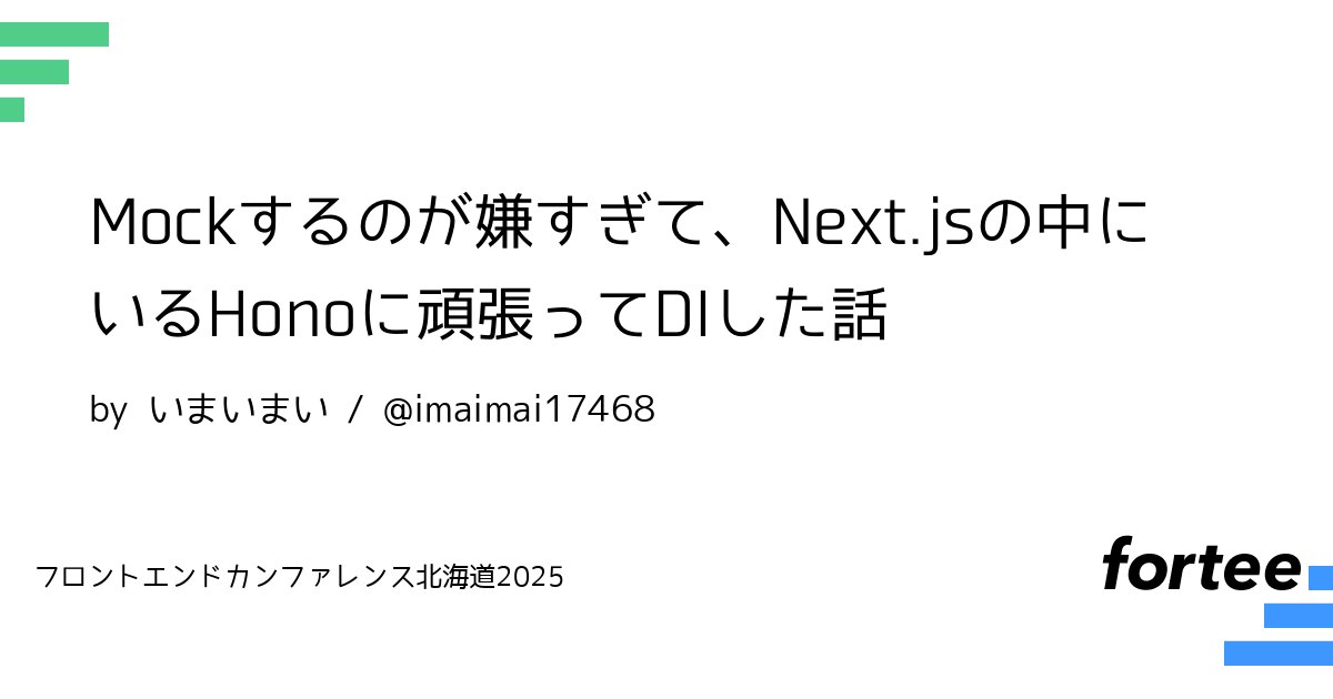 HonoをNext.jsで使っている方、テスト設計でモヤモヤしている方、あるいは「ちょっとしたDI」を試してみたい方にとって、肩の力を抜いて聞いていただける内容になればと思います。