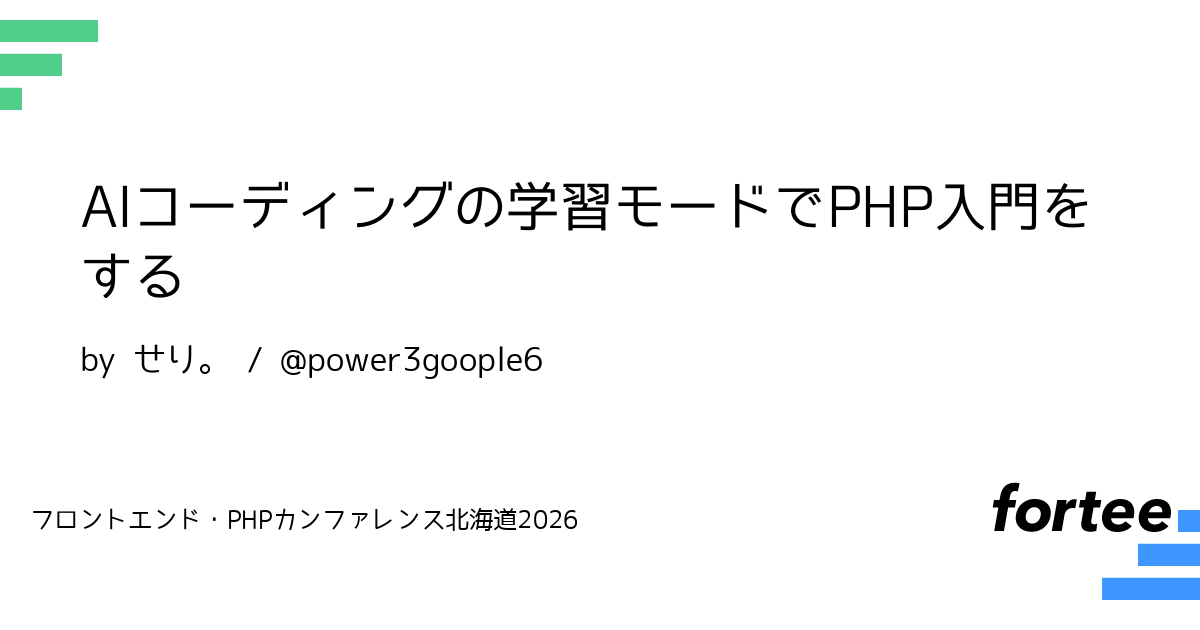 本LTでは、PHP 初学者である私自身が、AI ツールを用いて学習した経験についてお話しします。