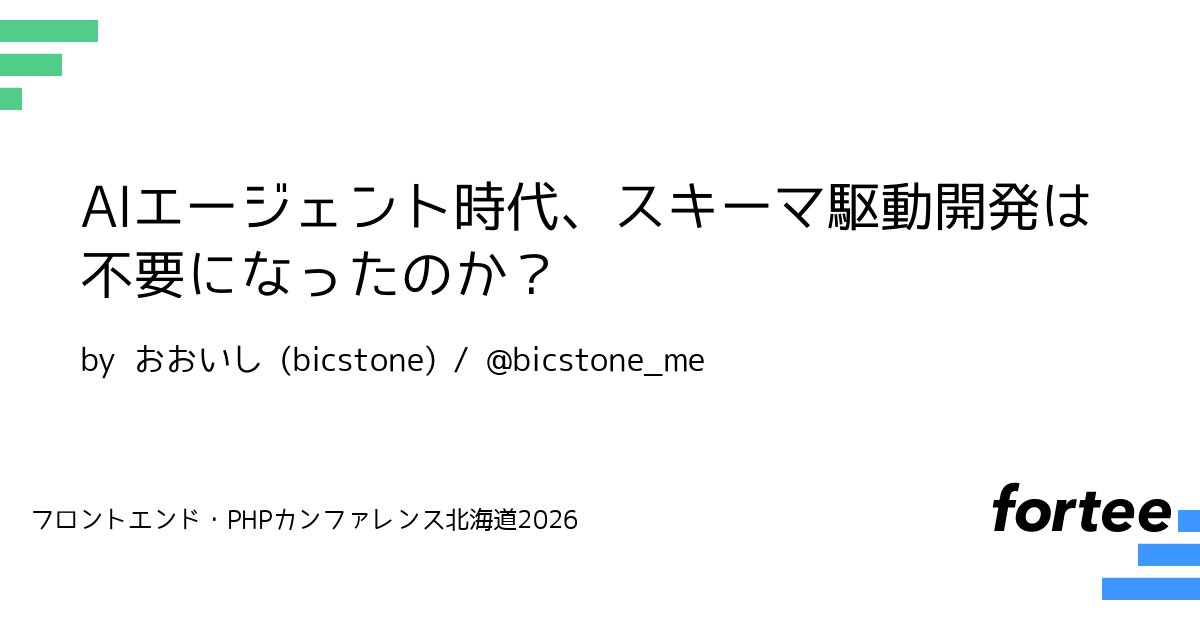 この発表を通じて、AIと共存する未来の開発において、スキーマがいかに重要なハブとなるかを理解し、日々の開発に活かすための視点を提供します。