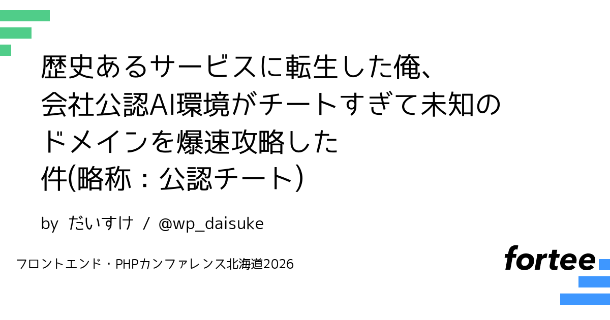 本セッションでは、PHP/フロントエンドを問わず、誰でも明日から実践できる「未知のコードとドメイン」の攻略術を共有します。