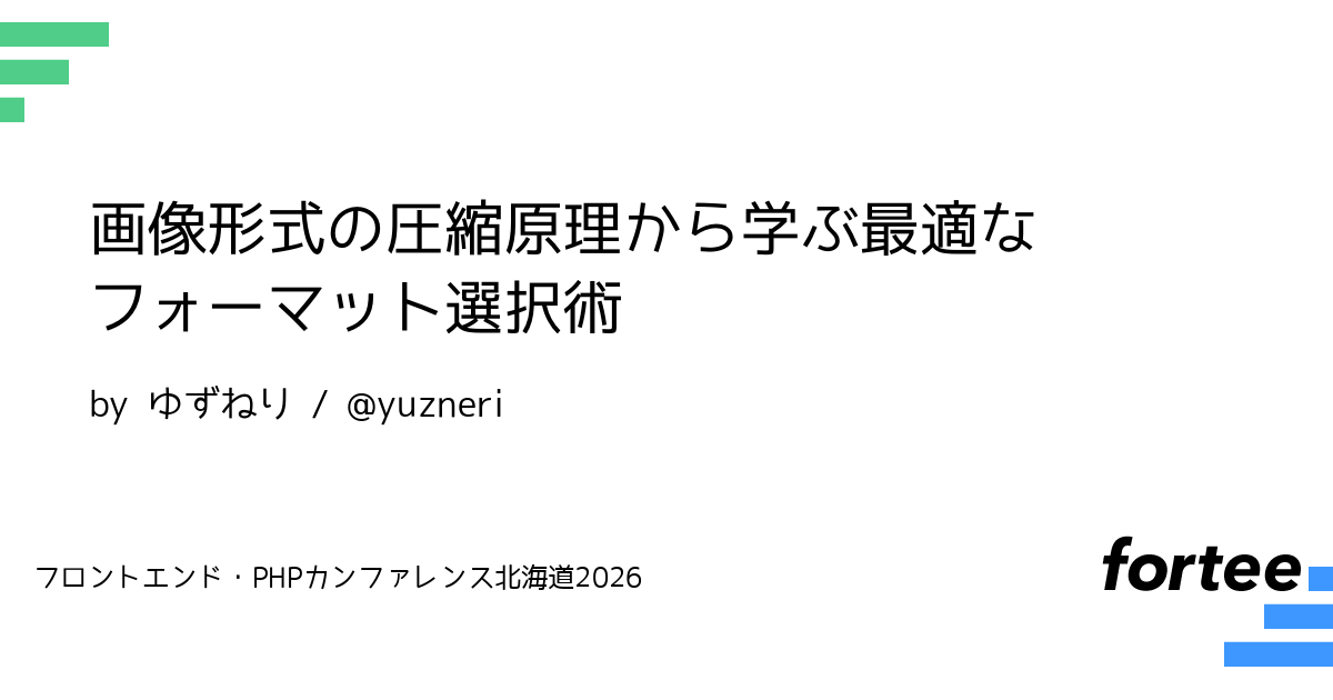 本セッションでは、日常的に利用されるJPEG、PNG、GIF、SVG、ICOといった画像形式と、次世代フォーマットとして注目されるWebPについて、