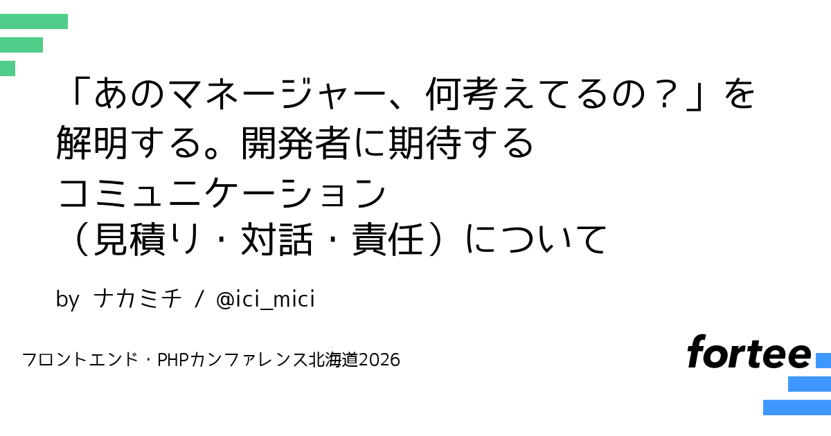 このセッションで目指すのは、私見ではあるが「マネージャーが何を考えていて、開発者とどんなコミュニケーションを取りたいのかを伝えること」である。