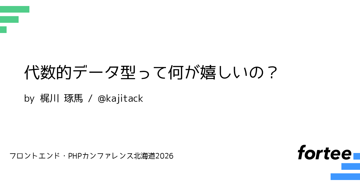 フロントエンドではTypeScriptの型検査、PHPではPHPStanの静的解析を活かし、言語やツールで担保できる範囲は素直に任せつつ、担保しきれない分岐や失敗だけを「閉じた形」として扱う落とし所を整理します。ケース追加時に「直すべき場所」が自然に見える形に寄せます。
