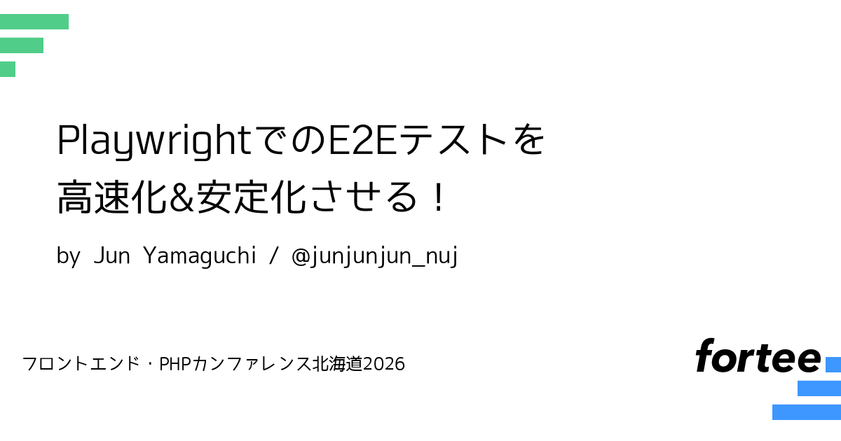 本セッションでは、私がPlaywrightを使ったE2Eテストを運用する中で、高速化・安定化させるために行った以下の取り組みを紹介します。