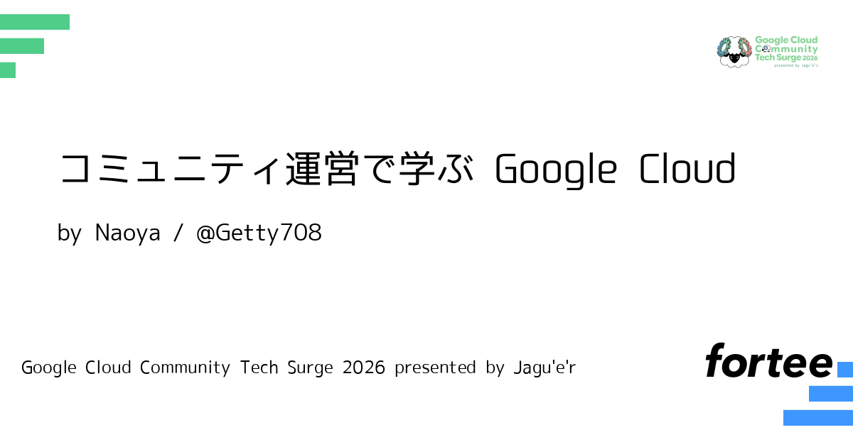 Google Developer Group (GDG) Tokyo は、Cloud、AI、Web、モバイルなど、Google の多様なテクノロジーに興味がある人が集い、学びを深めるコミュニティです。皆さんは イベントに参加することで学びを得ていると思いますが、私たち GDG Tokyo の運営チームも皆さん同様 Google Cloud のエキスパートではないため、イベントを運営することで多くの学びを得ています。