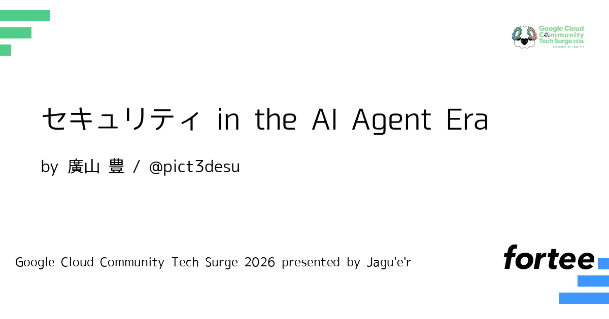 本セッションは、「セキュリティ in the AI Agent Era」と題し、AI Agentの飛躍的な進化とそれに伴うセキュリティリスクを解説したものです。 2025年は、Googleによる「Gemini 3」や開発環境「Antigravity」の発表など、AIが単なる補助(Co-pilot)から自律的な「相棒(Partner)」へと変貌を遂げたパラダイムシフトの年と位置づけています。一方で、AI Agent特有の「自律ループ処理」や「ツール使用」は、従来のセキュリティ境界を突破する新たな脅威を生み出しました。 セッションでは、間接的プロンプトインジェクションや権限昇格などの具体的リスクを詳説し、多層防御やHuman In The Loop(HITL)といった対策を提示します。さらに2026年の課題として「シャドーエージェント」への対応や、ISO42001(AIMS)等のガバナンス構築の必要性を提言しています。