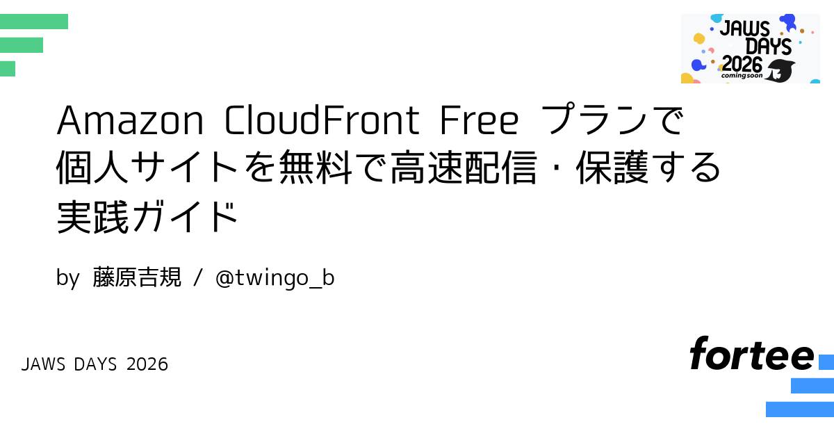 CloudFront flat-rate Free プランは個人サイト運営者にとって新たな選択肢です。このセッションでは、月額無料で利用できる Free プランの実力を徹底解説します。