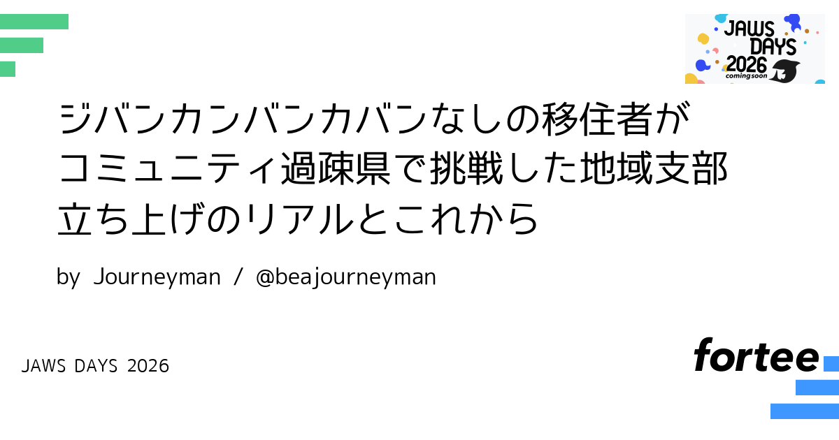 3年前の異動でそれまで関わって来なかったクラウド基盤を利用したシステムの開発維持を担当するようになりました。初めてAWS認定を取得し、その年のFestaで5分だけの登壇を果たしました。その頃から、地元にJAWS-UGがないことは知っていました。そもそもJAWS-UG以前に地元はコミュニティ過疎県でした。数ヶ月で片手で数えるほどしか勉強会がなく、同じ関東の東京の100分の1の規模でした。「なければ自分で地元に作る」そう決めてから、全国イベントにとどまらず日本全国の各支部を飛び回り、登壇し、運営メンバーと夜な夜な密な議論を重ね、つながりを作り、地域支部運営の勘所を学びました。そして、今年、ついに立ち上げの日を迎えました。泥臭いリアルな取り組みとこれからについてご紹介し、地域支部運営のみなさんとともに学びながら、新たな運営者の背中を押すセッションを目指します。
