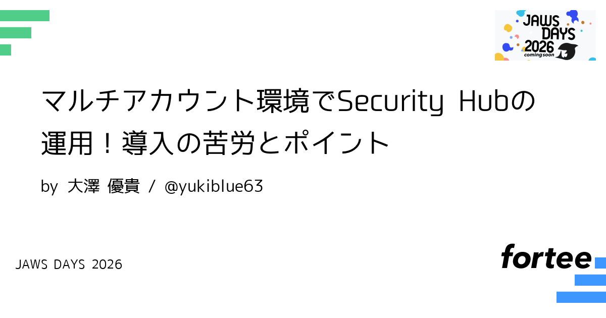 本セッションでは、100近いマルチアカウント環境でSecurity Hubを導入・運用する際に遭遇した課題と、その解決のために実施した工夫についてお話しします。複数のAWS Organizationsにまたがる環境では、設定統一化の必要性という課題があります。また、高頻度のセキュリティ検知通知が一つのSNSトピックに集中し、配信レート制限超過で自動停止する問題にも遭遇しました。その課題に対し、配信ポリシーの最適化やサービス別の通知設計による工夫でSNSトピックの問題を解決し、運用にあたり現場とのコミュニケーションでの取り組みにより課題を乗り越えた手法をお話しします。