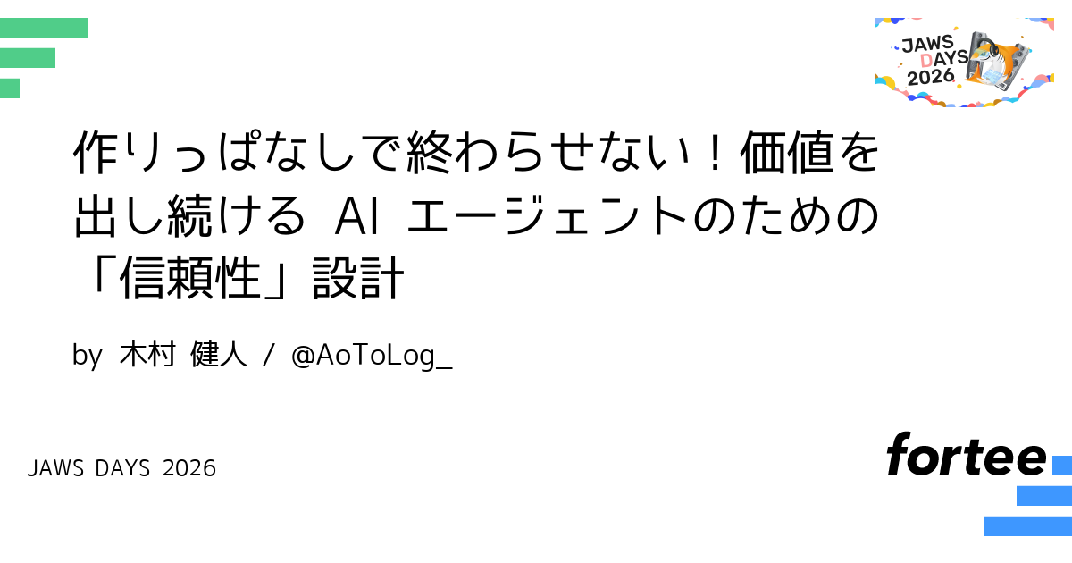 さらに、Datadog LLM Observability を通じて可視化したトレースと、LLM による自動評価や AI エージェントのトピック分析を通じて、AI エージェントに求められる「信頼性」を考察します。