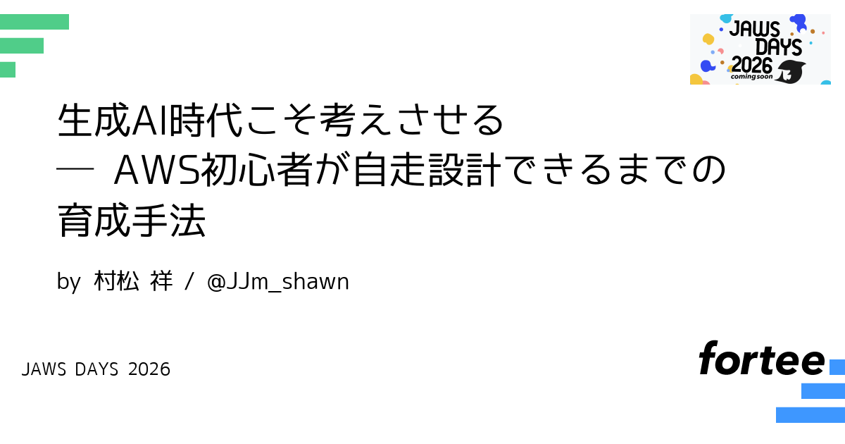 例えば「なぜEC2+MySQLではなくRDSなのか」「ALBとNLBをどう選ぶか」といった問いを繰り返し、経験者が無意識に行っている判断を言語化していきました。試行錯誤を前提に、設計に迷ったときに立ち返る軸を育てる過程をお話しします。